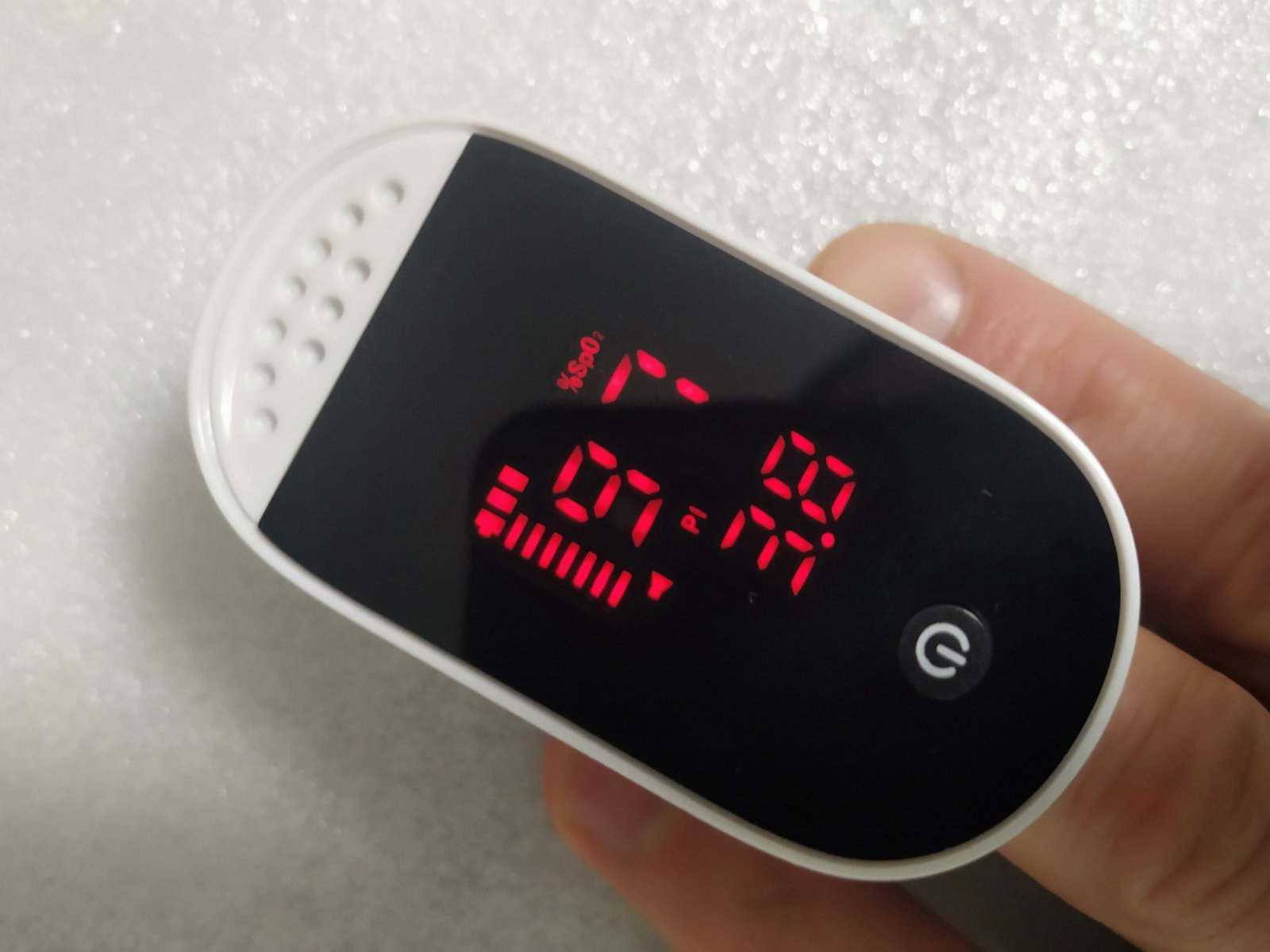 Обычный бытовой пульсоксиметр работает на диоде, который одновременно излучает два световых потока, свет проходит через палец, прибор измеряет количество поглощенного пальцем света и дает результаты.