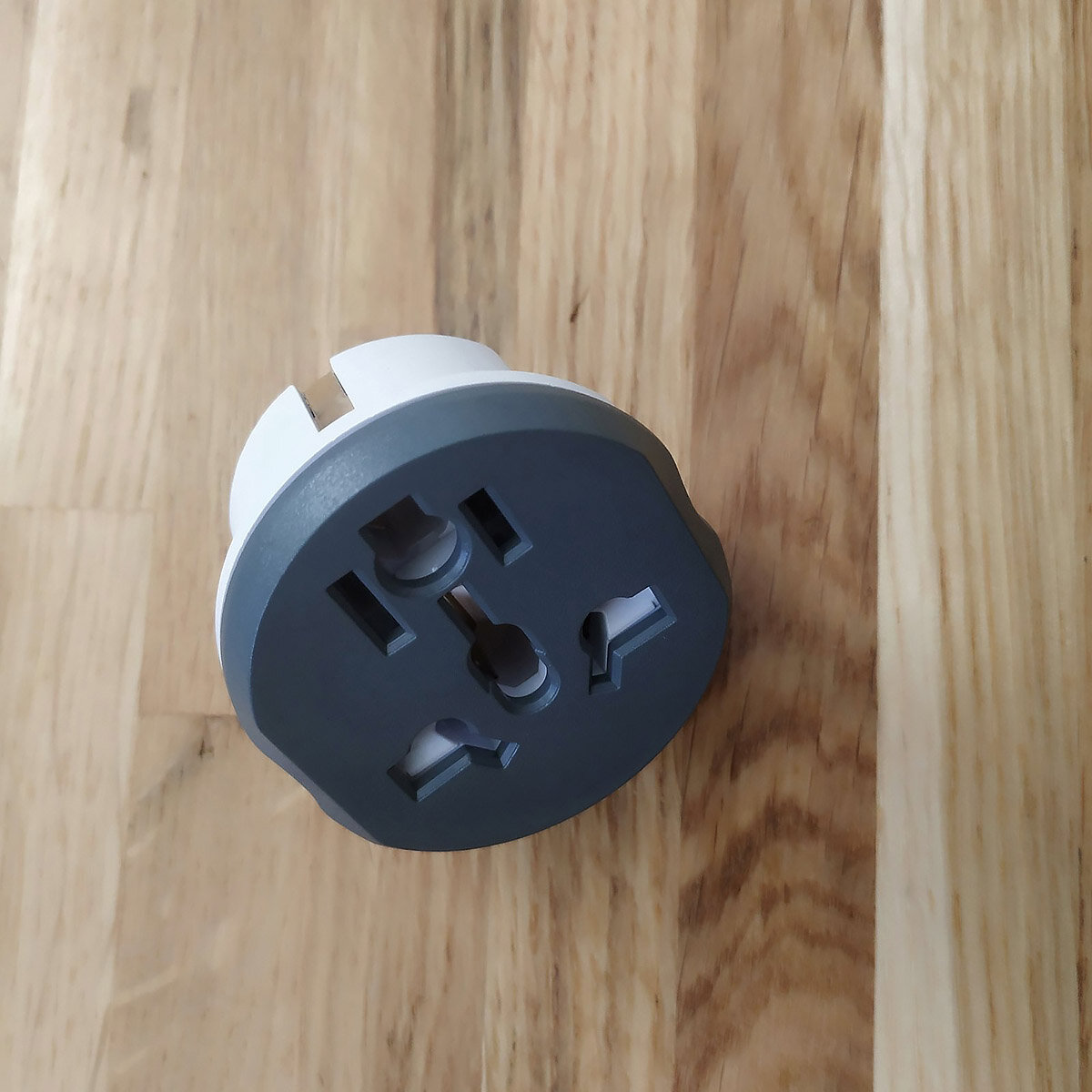 Перехідний адаптер зі стандартів US / UK / AU в стандарт EU. Його особливість в тому, що адаптер дуже маленький.