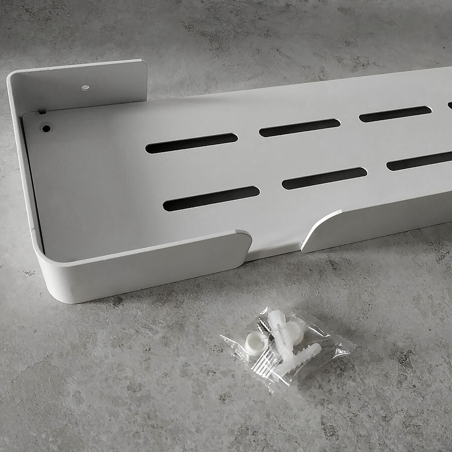 Полка для ванной изготовлена из алюминия, устойчива к воздействию влаги, не ржавеет. Полка имеет современный дизайн (модерн, лофт), гармонично сочетается с большинством дизайнерских решений при обустройстве ванной комнаты. Покрытие - прочный грунт + краска.