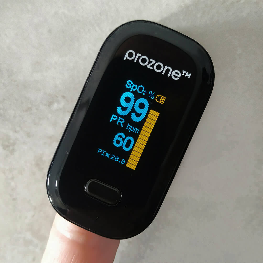 - Звичайний добрий пульсоксиметр вимірює 2 вимірювання на різній частоті. ProZone oClassic 2.0 робить додатковий 3-й калібрувальний вимір - Усуває вплив зовнішнього світла.