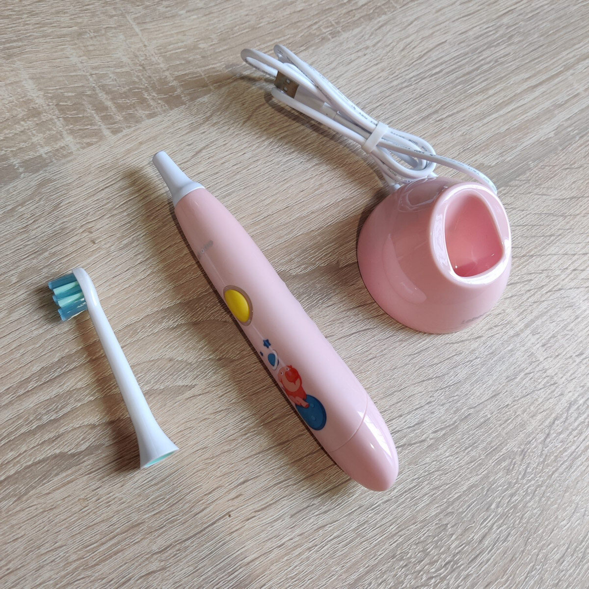 Комплектація: зубна щітка, 1 насадка, станція зарядки з USB-кабелем.