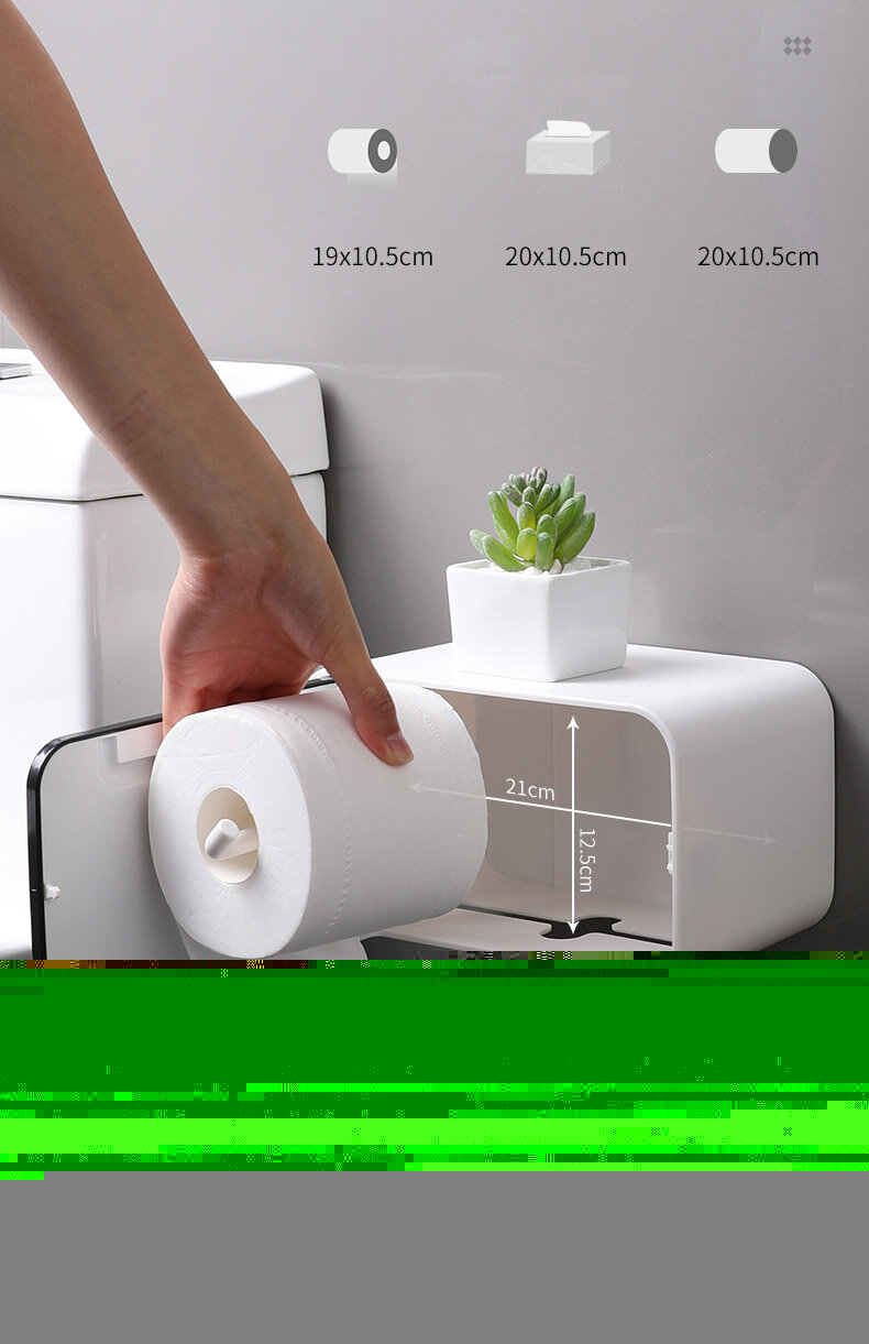 Бокс для туалетного паперу виготовлений з міцного пластику. Заправляти тримач можна як рулонним папером, так і серветками. Віконце по центру дозволяє стежити за залишками паперу. Відкривається легким натисканням на дверцята. Також тримач можна використовувати як поличку. Тримач-бокс для туалетного паперу кріпиться на рівну поверхню за допомогою самоклеючої пластини, яка йде в комплекті.