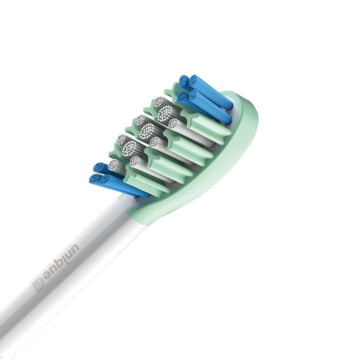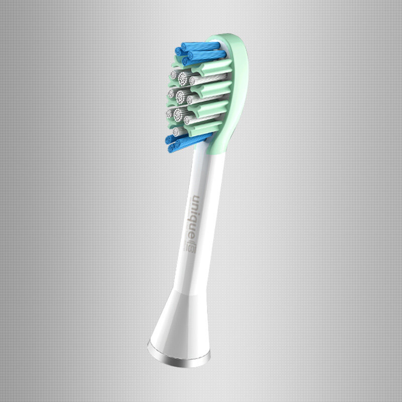 Щетина насадки складається з волосинок товщиною 0 , 2 мм об'єднаних в щільні пучки для точкового впливу на зубну емаль. Передня і задня зони довші, забезпечують хороше вичищення між зубами. Unique Whitening ефективно видаляє наліт від чаю, кави, сигарет і відбілює зуби на 2 тони протягом декількох тижнів.