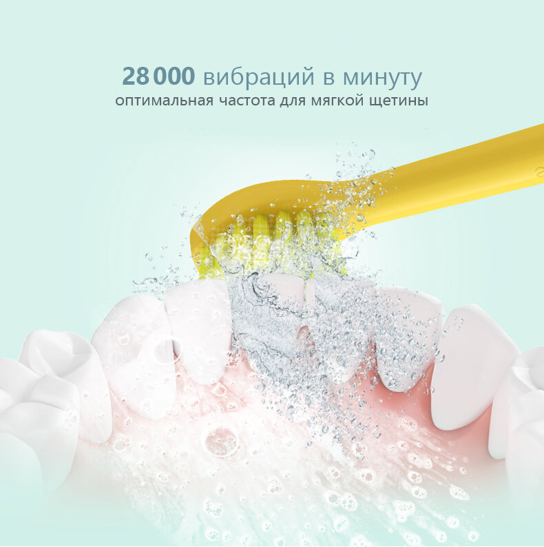 | Особенности | От 3-х лет 2 сменные насадки Щетина Tynex DuPont (США) Размер чистящей зоны - 20мм, максимальная ширина - 15 мм |