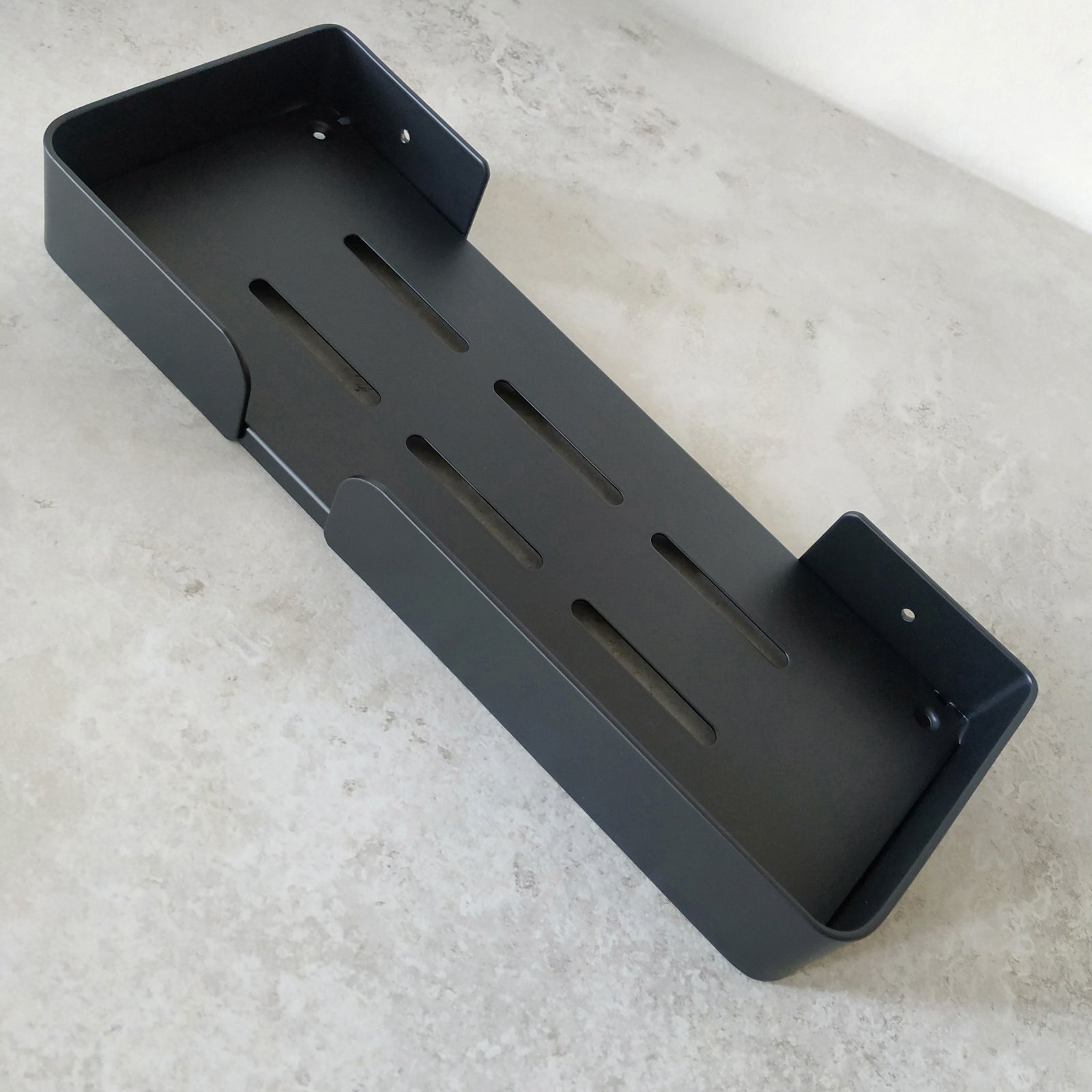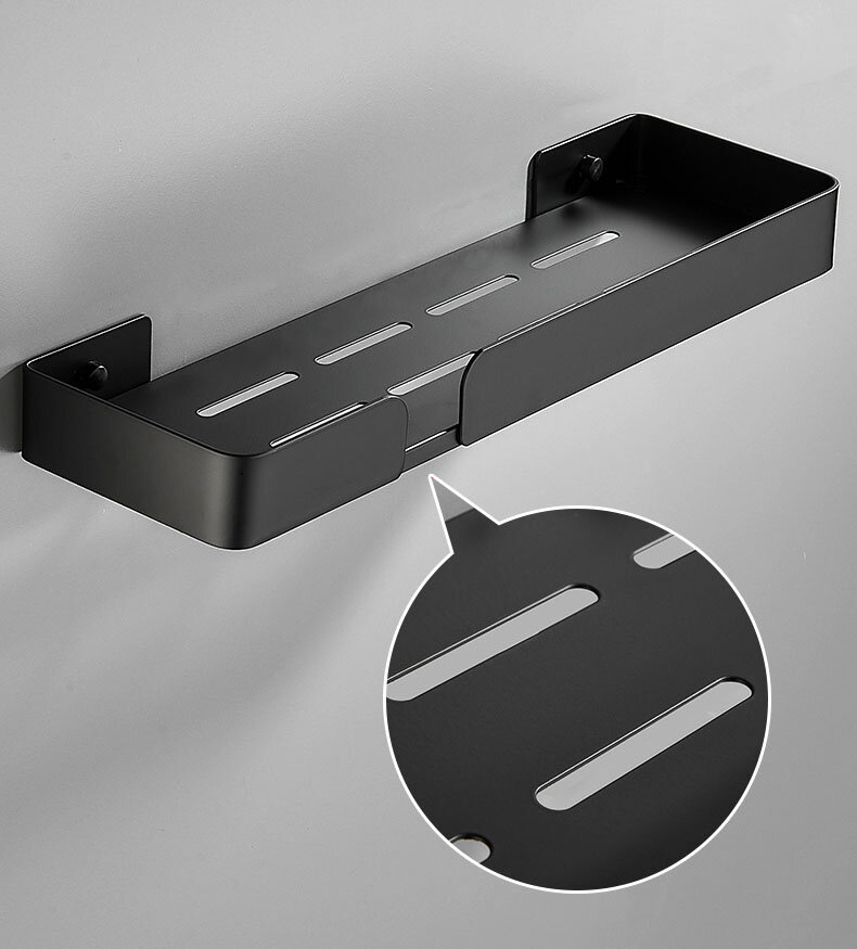 Полиця для ванної виготовлена з алюмінію, стійка до дії вологи, не іржавіє. Полиця має сучасний дизайн (модерн, лофт), що гармонійно поєднується з більшістю дизайнерських рішень при облаштуванні ванної кімнати. Покриття – міцний ґрунт + фарба.