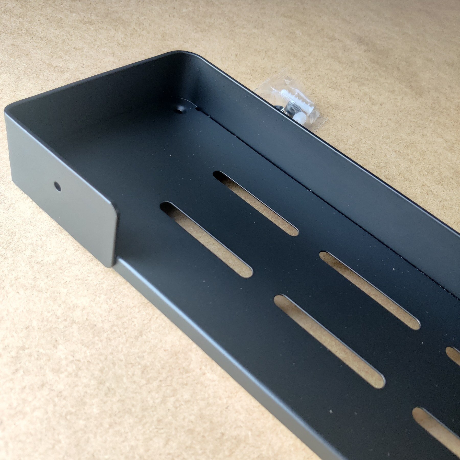 Полиця для ванної виготовлена з алюмінію, стійка до дії вологи, не іржавіє. Полиця має сучасний дизайн (модерн, лофт), що гармонійно поєднується з більшістю дизайнерських рішень при облаштуванні ванної кімнати. Покриття – міцний ґрунт + фарба (качество покраски среднее).