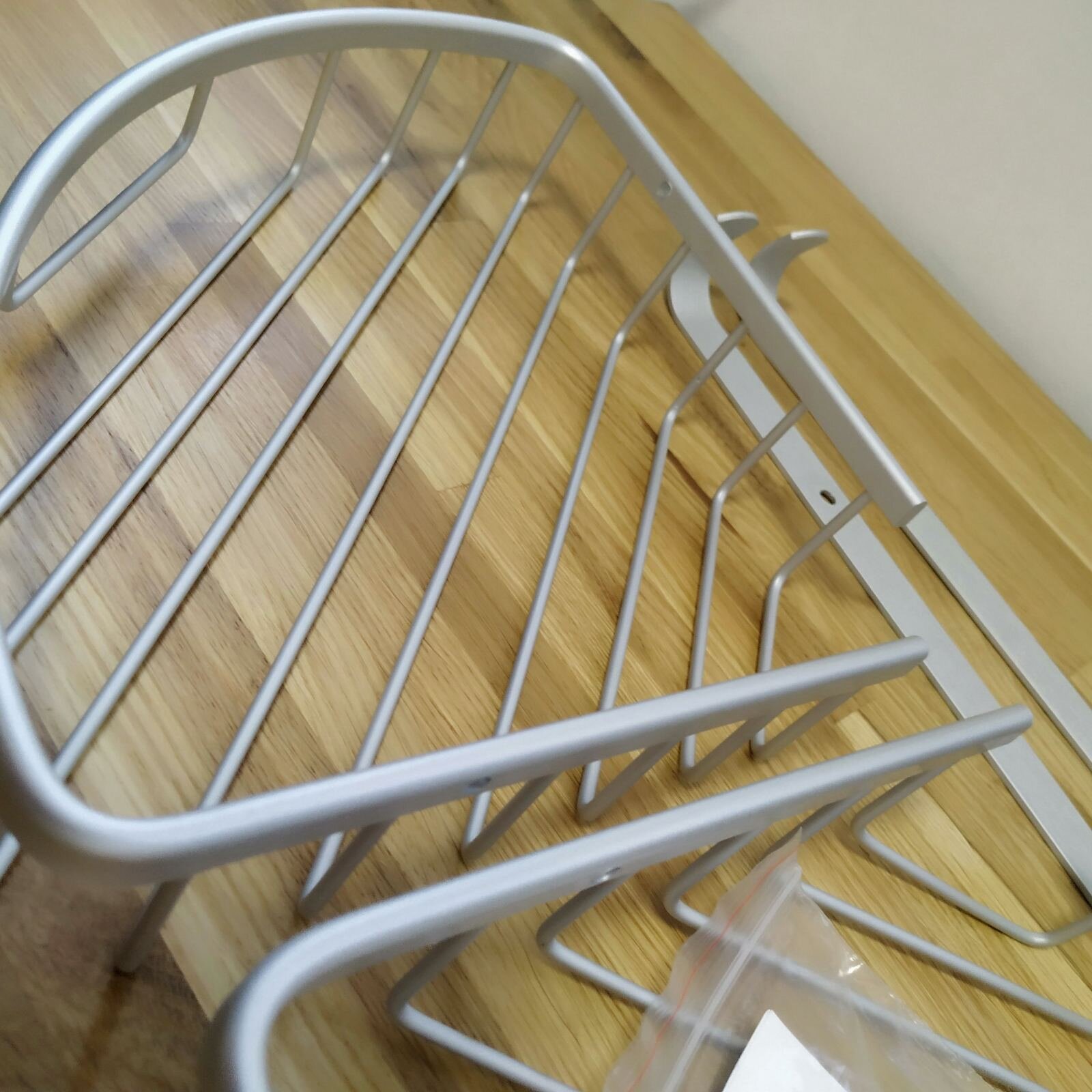 Надежная качественная полка для ванной. Полка изготовлена из алюминия - прочная и не боится коррозии. Имеет стильный дизайн, серебристый цвет и гладкую поверхность. Нет острых краев. Поставляется в частично разобранном виде, легко собирается.