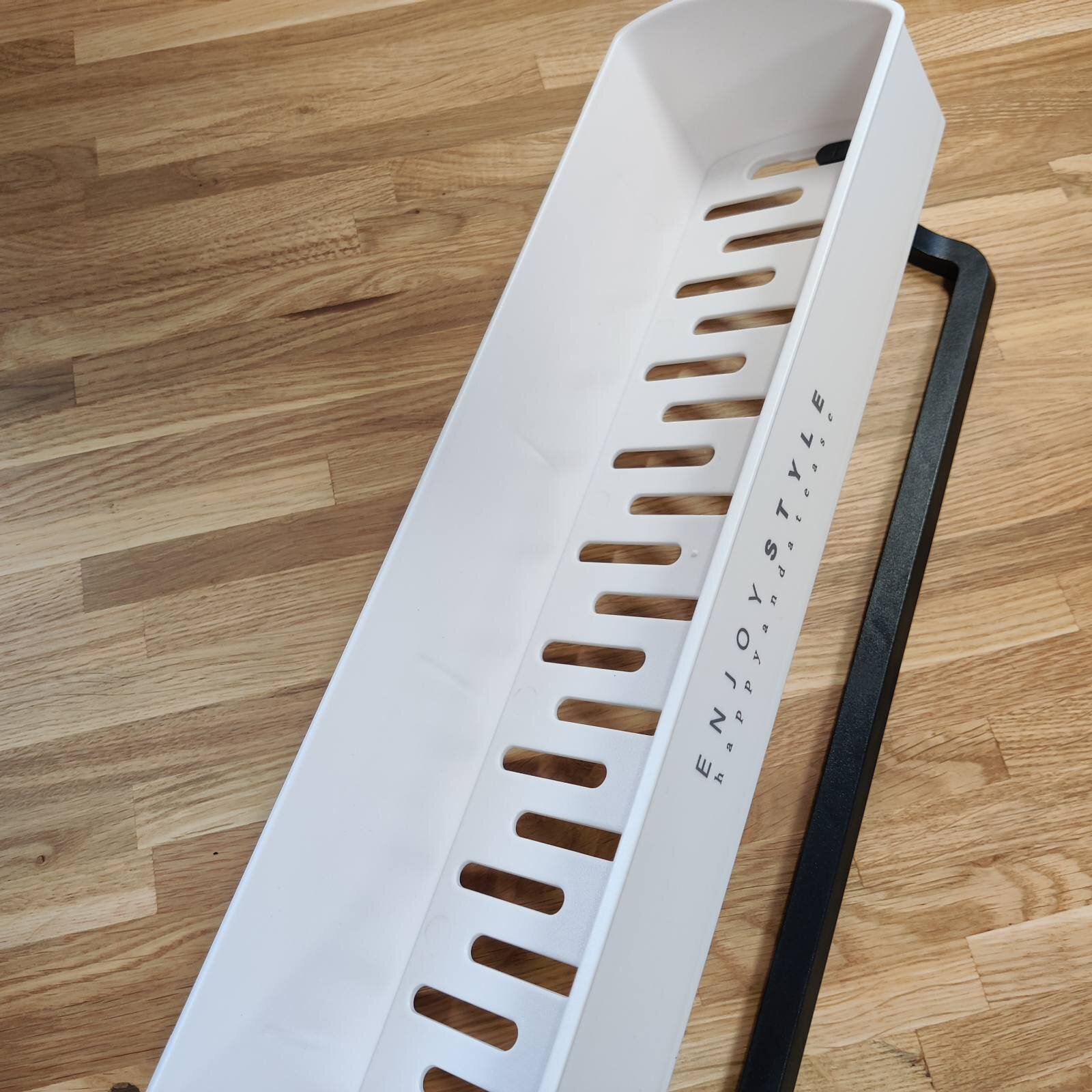 Настінна полиця із пластику NOOOTH (раніше JOSOGO) міцна і не боїться вологи. Надійне просте кріплення за допомогою спеціальних клейких панелей (без свердління). Пластик має зовнішню графітну текстуру, що робить поличку дуже стильною.