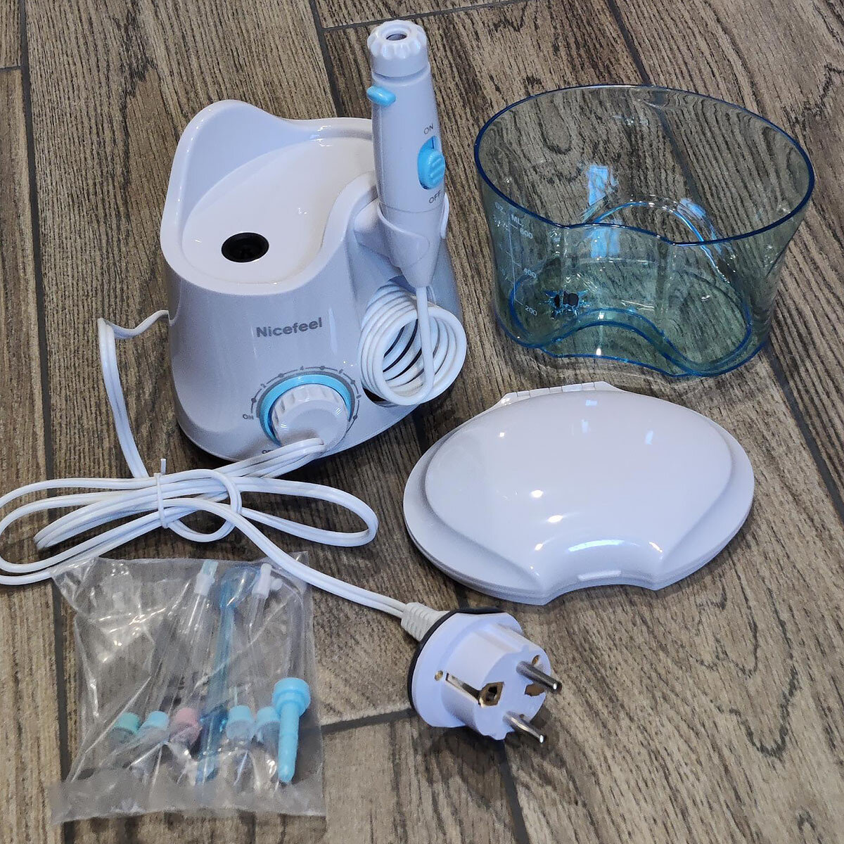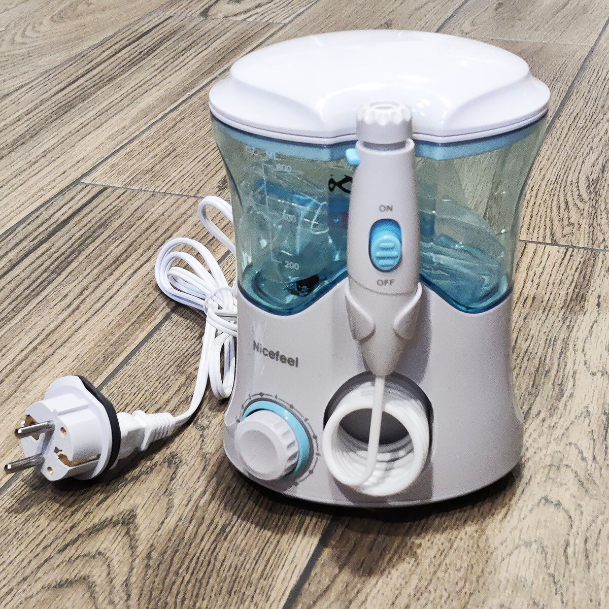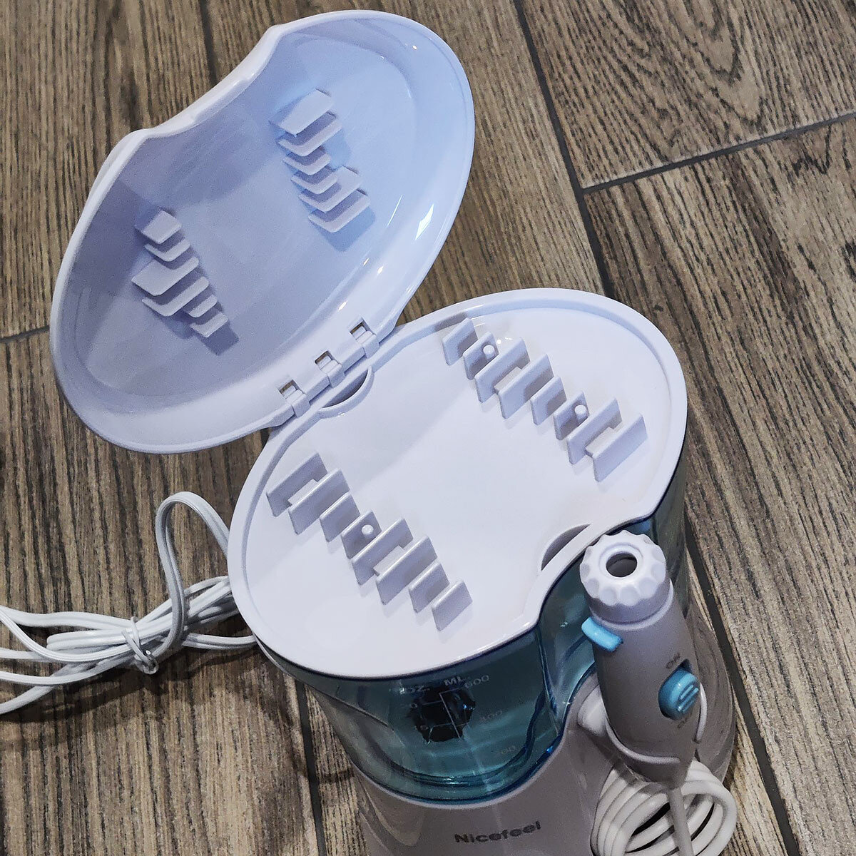 Долго себе подбирала ирригатор, остановилась на этом. Довольна, сопла все прячутся в специально отведенное место над крышкой резервуара. Провод не растягивается, всегда принимает свое место. Давление легко регулировать. Включать и выключать также практично и удобно, потому что создан слайдер на ручке. После использования начала замечать улучшение и отсутствие неприятного запаха под коронками. Рекомендую.