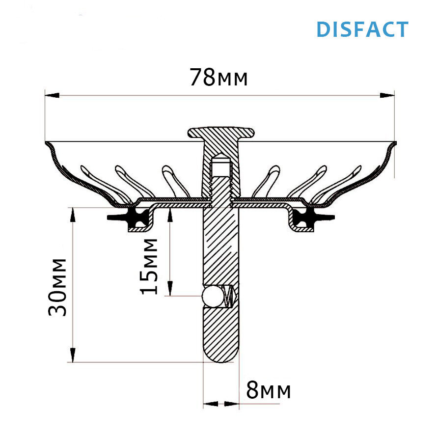 Сітка-клапан для миття виготовлена з нержавіючої сталі, що гарантує тривалий термін експлуатації виробу. Сітка встановлюється в зливний отвір кухонного миття і служить для запобігання засмічення.