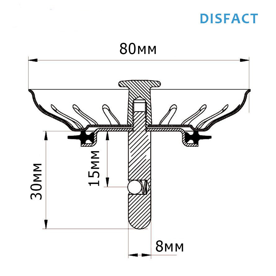 Сітка-клапан для миття виготовлена з нержавіючої сталі, що гарантує тривалий термін експлуатації виробу. Сітка встановлюється в зливний отвір кухонного миття і служить для запобігання засмічення.