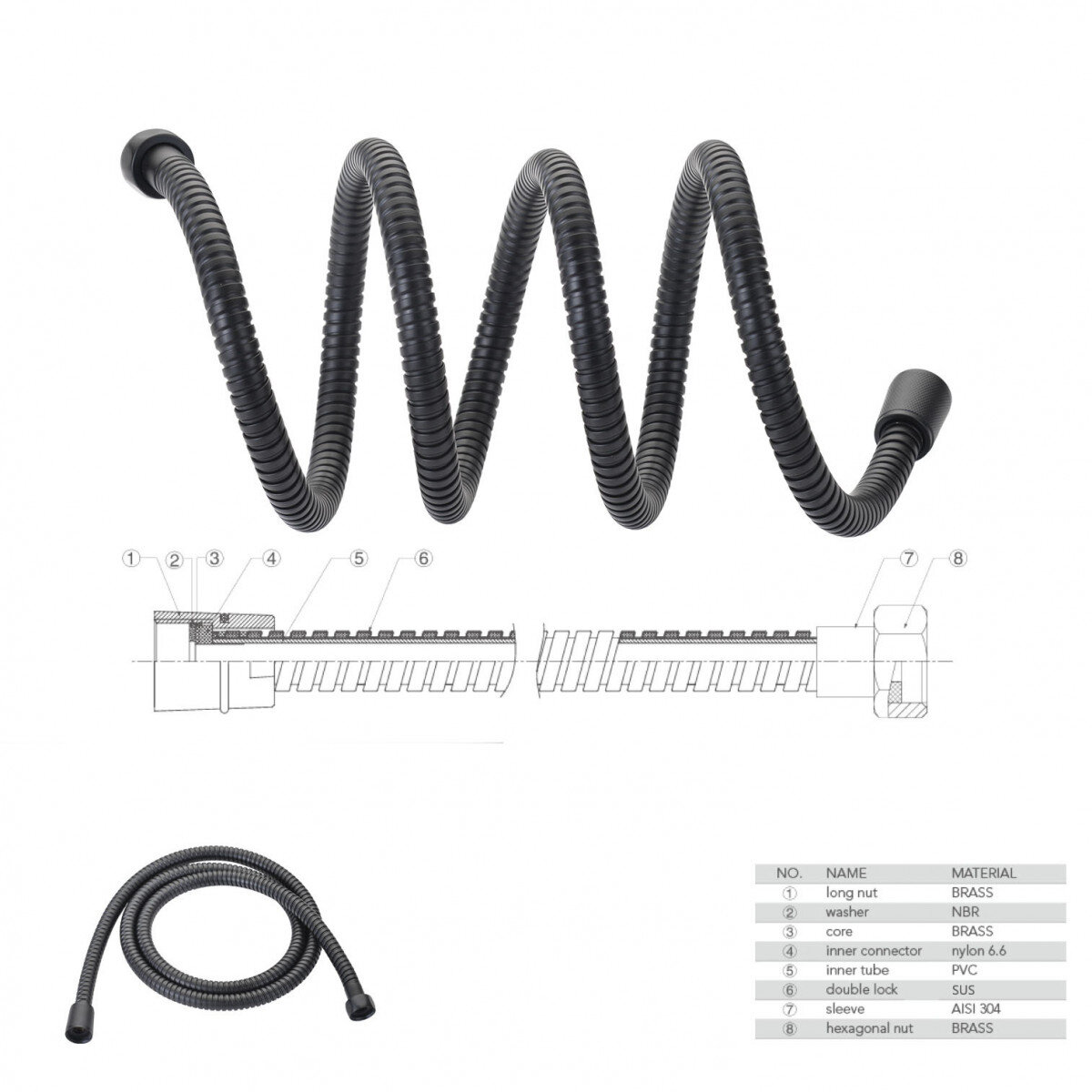 Сталь покриття шланга піддається гальванопокриттю та чорнінню – продукт не має таких проблем, як вицвітання.
