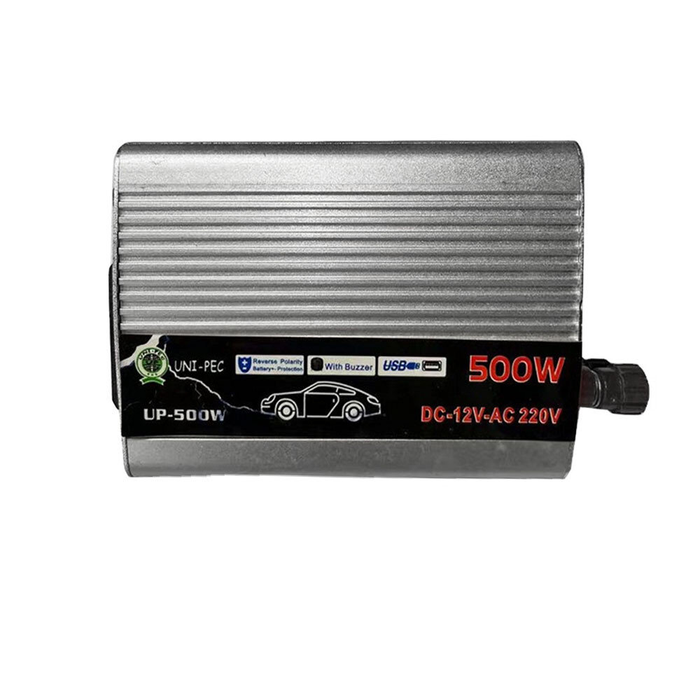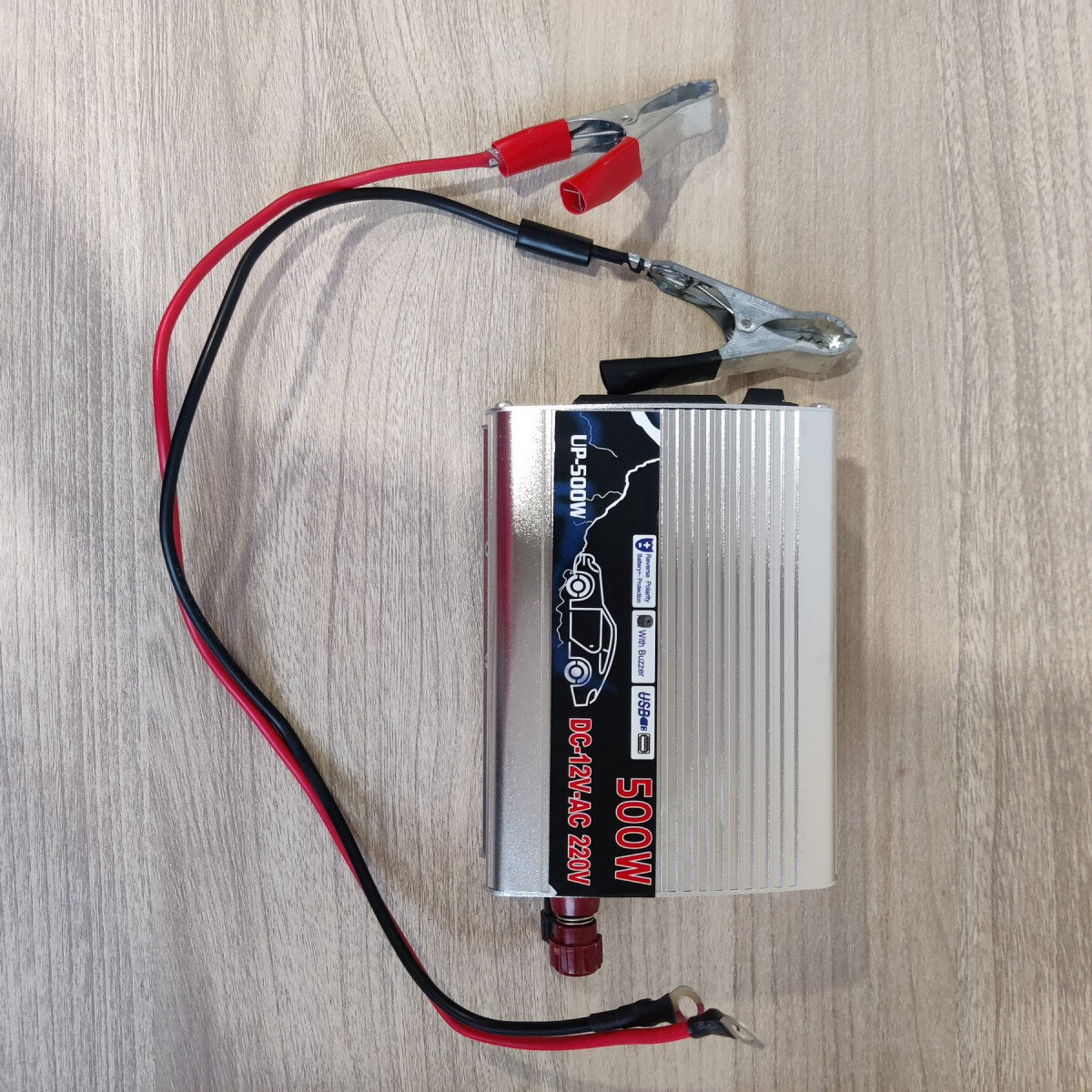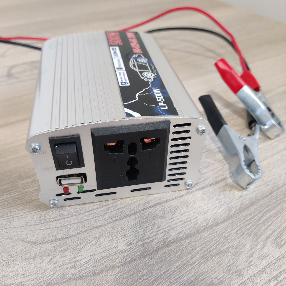 Інвертор в алюмінієвому тепловідвідному корпусі максимальною потужністю 500 Ватт. Є USB вихід. Живлення від акумулятора чи сонячної панелі. Модифікована синусоїда.