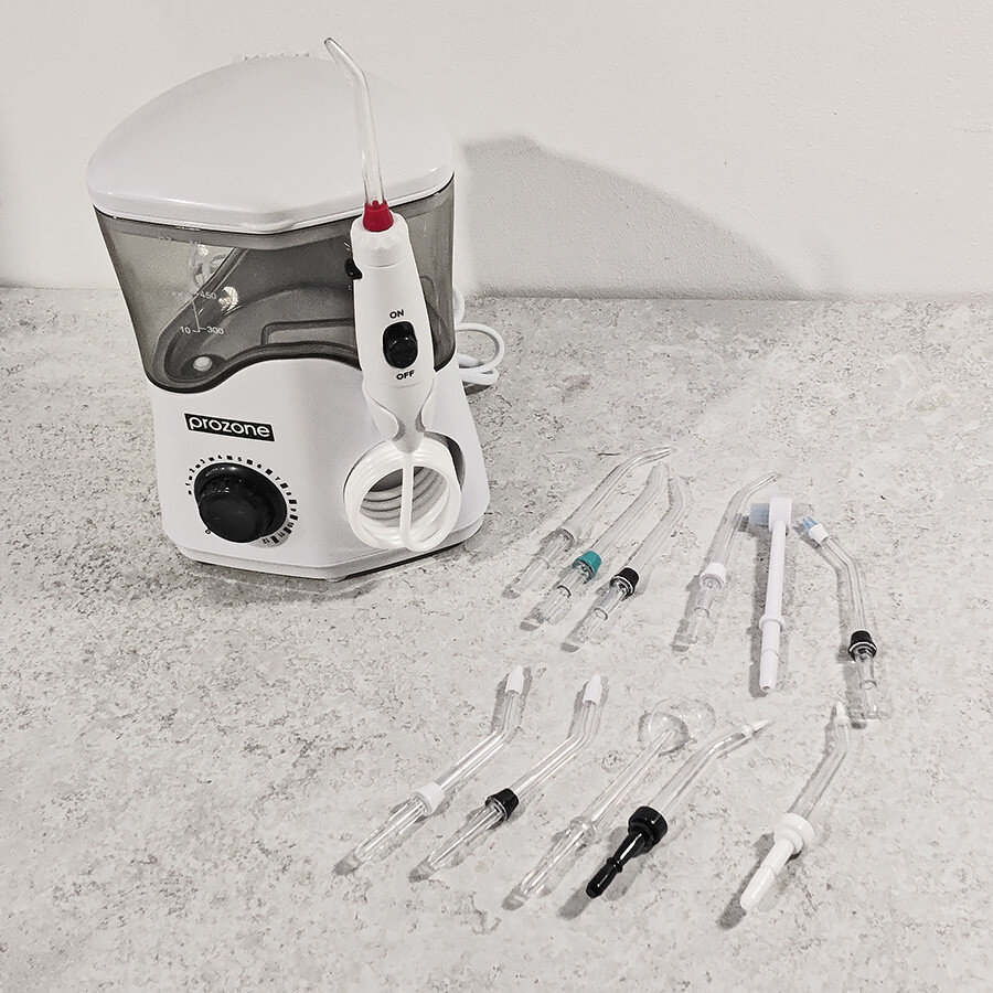 Настільний іригатор ротової порожнини ProZone D7 Compact Extended White (EU) - відмінний вибір для тих, хто хоче покращити свою гігієну порожнини рота. Завдяки сучасному дизайну, рівням тиску, що настроюються, і компактним розмірам цей іригатор є одночасно функціональним і стильним. Амортизуючі ніжки, верхній водяний насос та функції безпеки роблять його найкращим претендентом на ринку пристроїв для гігієни ротової порожнини.