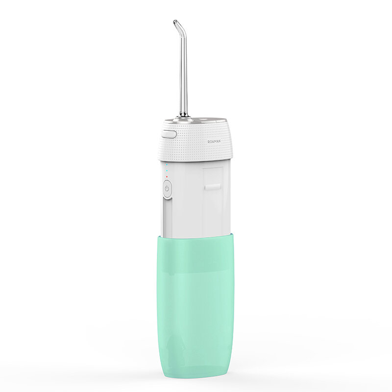 Ирригатор складывается, сменное сопло прячется внутрь корпуса. Мощный аккумулятор. Цветовая гамма для мужчин и женщин (синий, зеленый и розовый).
