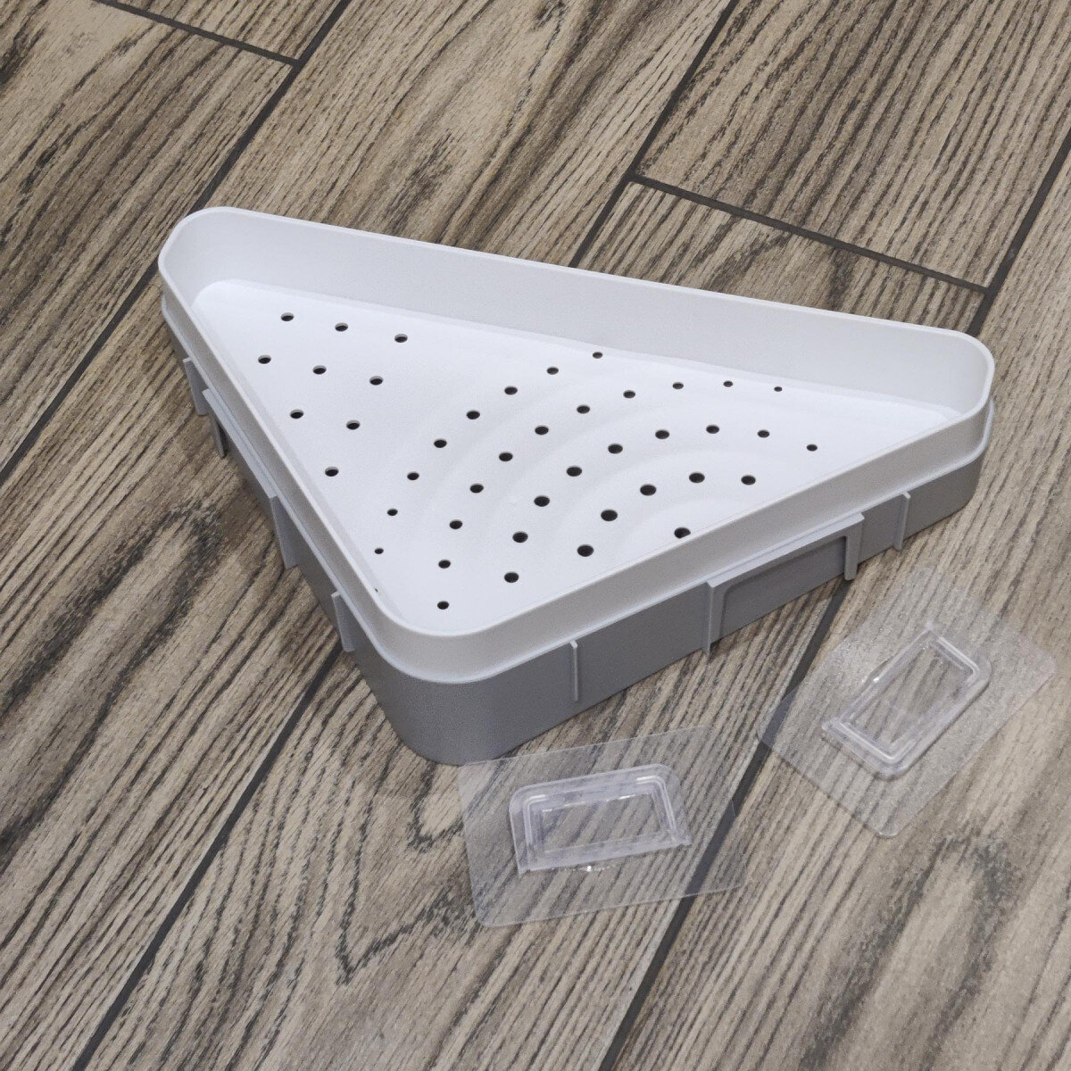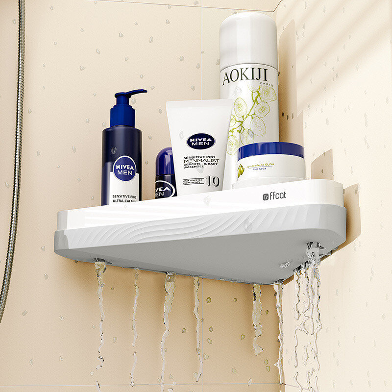Полиця для ванної виготовлена ​​із пластику. Хороша якість, простий монтаж за допомогою клейких пластин.