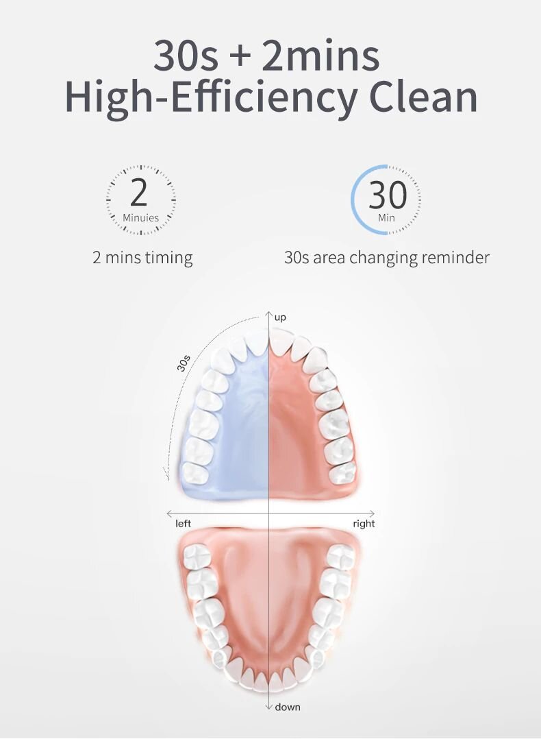 - Whiten (33 000 - 42 000 рухів/хв) - режим з різкими імпульсами для видалення зубного каменю, для періодичного використання.