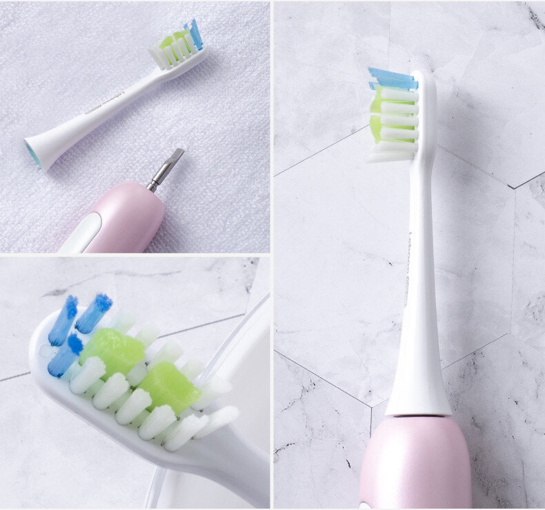 Важлива особливість виробу – велика ширина головки без класичного заокруглення на кінцях. Даний підхід дозволяє збільшити кількість волосин, що вібрують з максимальною амплітудою, ефективність чищення зростає на цілих 27%.