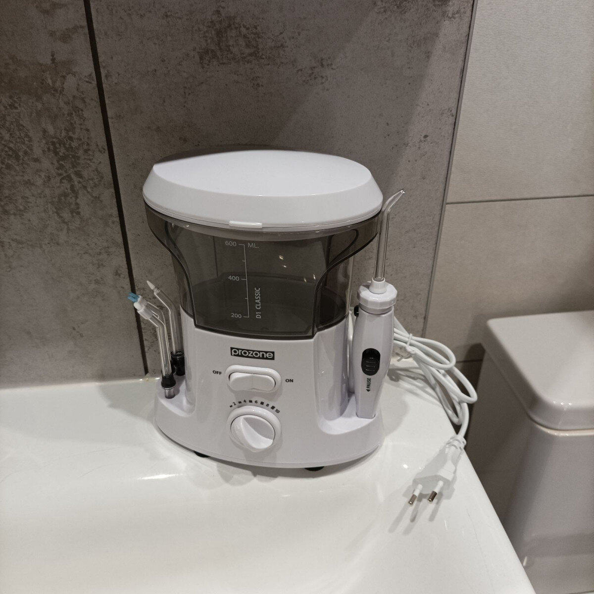 - Тримач 3-х насадок на корпусі приладу - Вам не потрібно постійно шукати заховані насадки, а після процедури іригації сушити їх перед тим, як сховати.