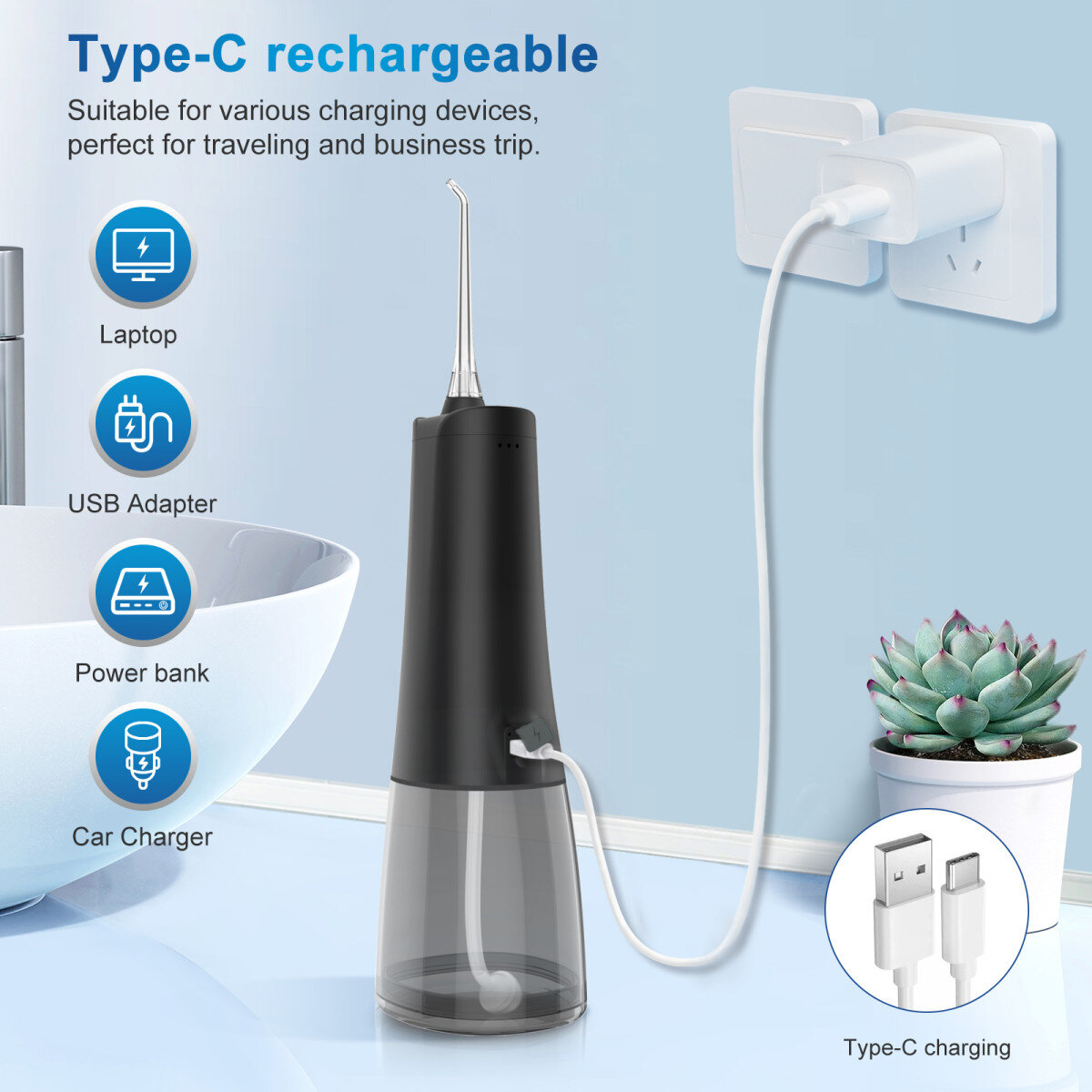 Комплектація: іригатор, 4 насадки, зарядний кабель (USB Type-C).