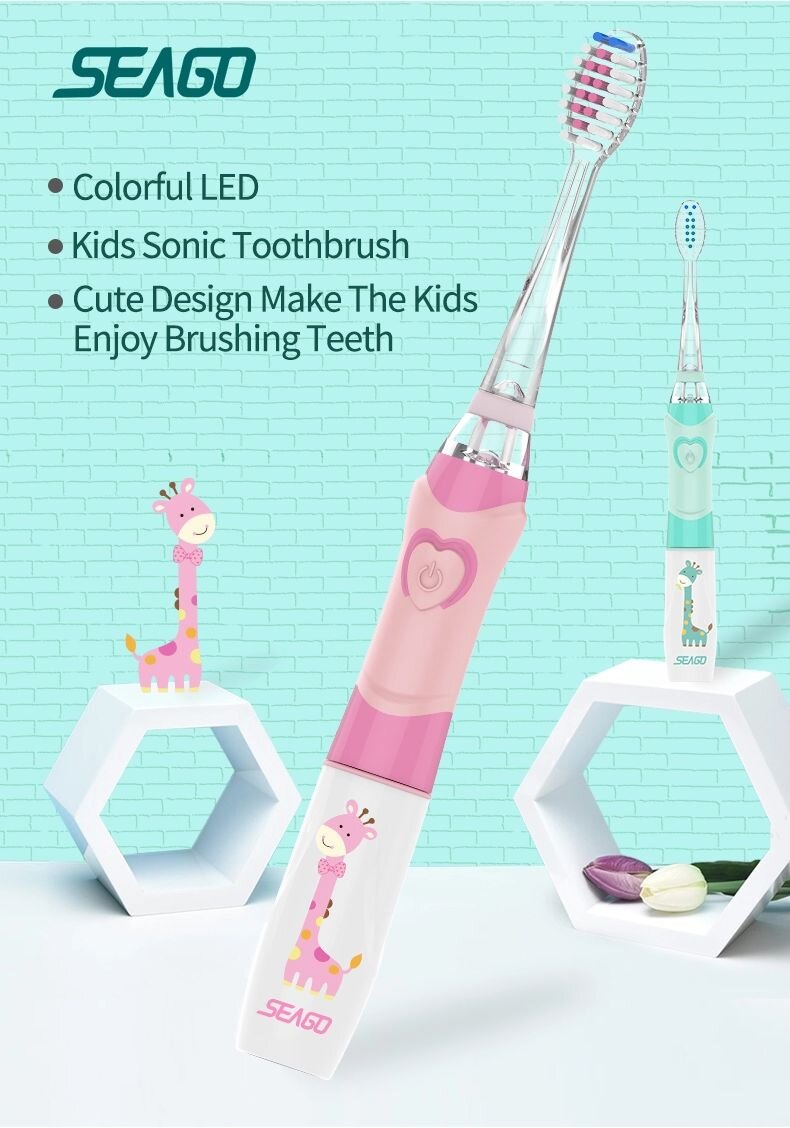 Дитяча зубна щітка призначена для дітей віком від 3-х років. Працює за звуковою резонансною технологією із частотою вібрацій 16 000 за хвилину. Для дітей це безпечно та ефективно. У виготовленні зубної щітки використаний безпечний ABS та TPE пластик, щетина – Soft Dupont Nylon. Зубна щітка працює на одній батарейці формату ААА понад місяць. Для привернення дитячої уваги є підсвічування.
