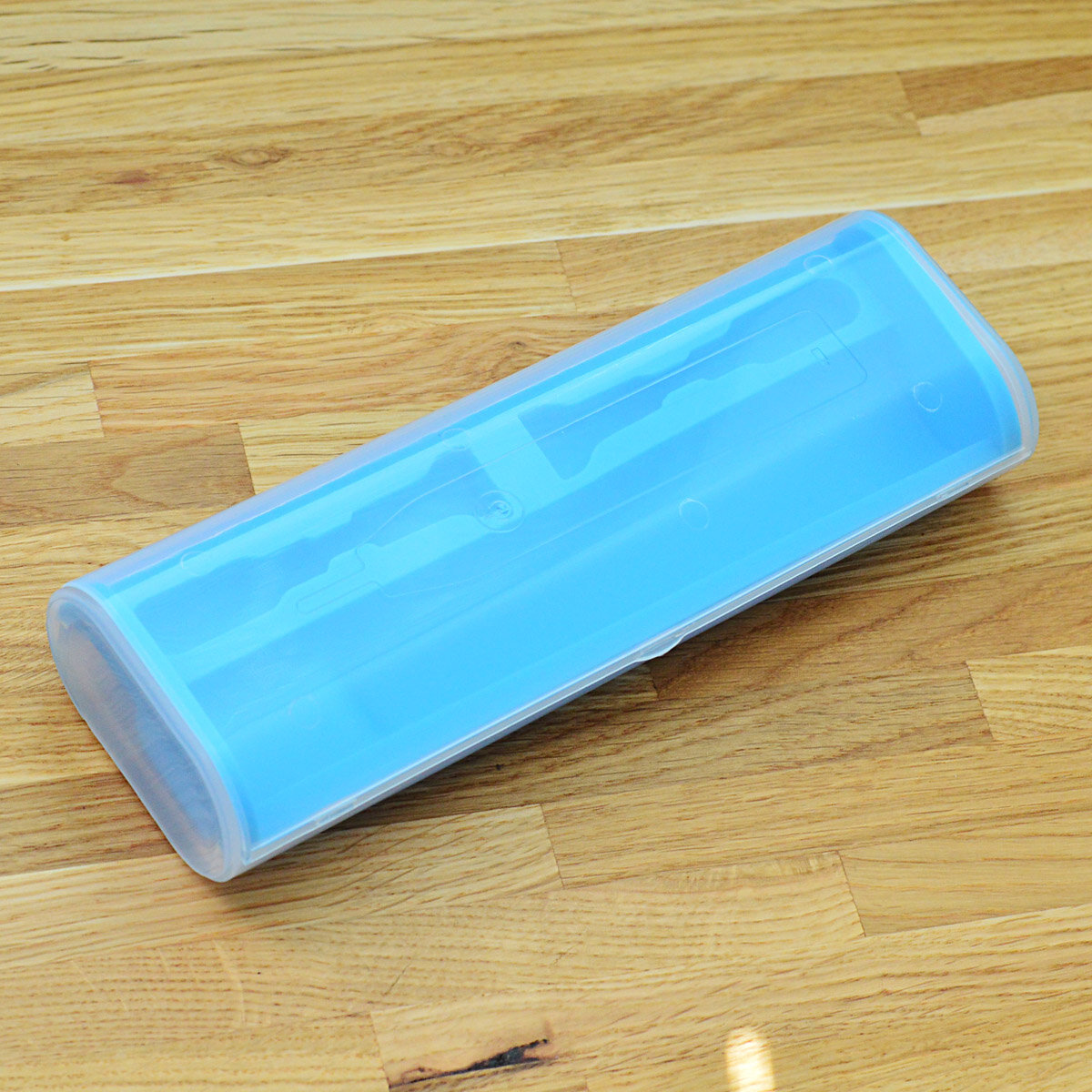 Футляр в передней части имеет уменьшенную глубину, это позволяет щетке лежать более плотно, данная форма идеально подходит для "изогнутых" электрических зубных щеток, которые выпускаются компанией Lebond. Данные зубные щетки более удобные в использовании, но подобрать для них дорожный бокс сложнее.