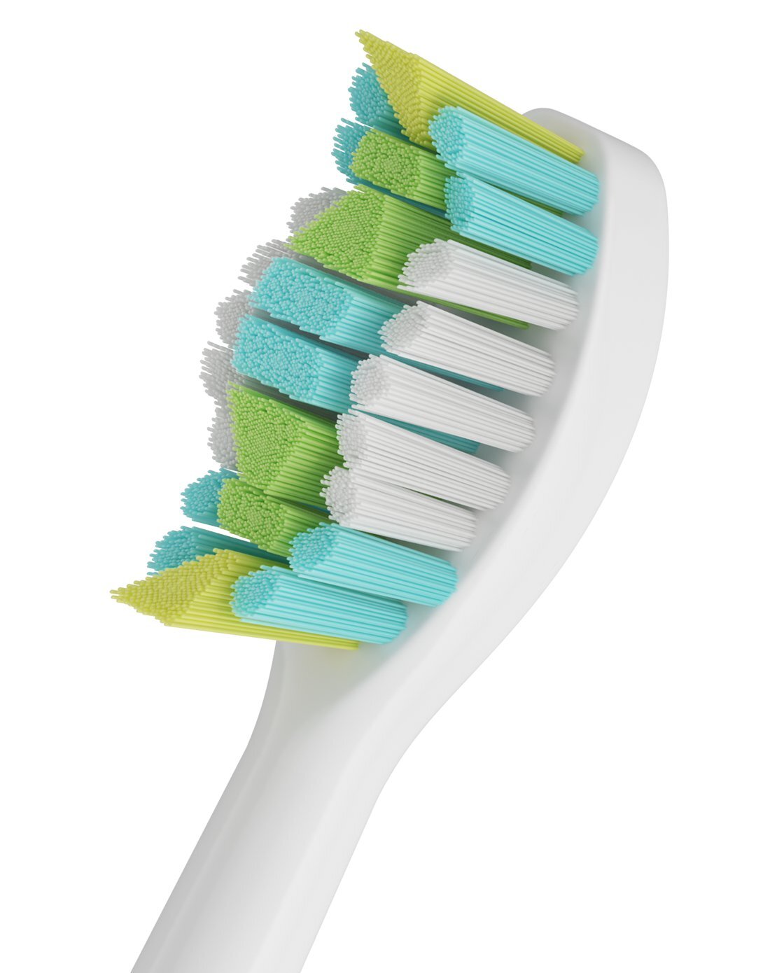 Додаткові виступи щетини у верхній і нижній частинах головки гарантують ефективну чистку в важкодоступних місцях.