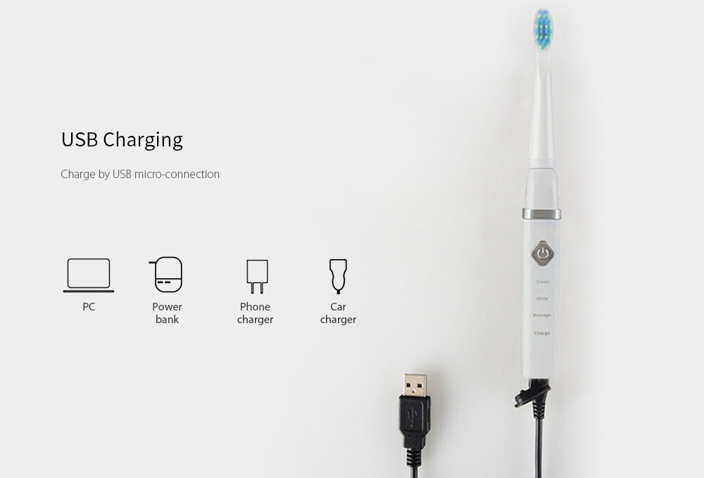 | Комплектация | Зубная щетка 2 деликатные насадки USB кабель |