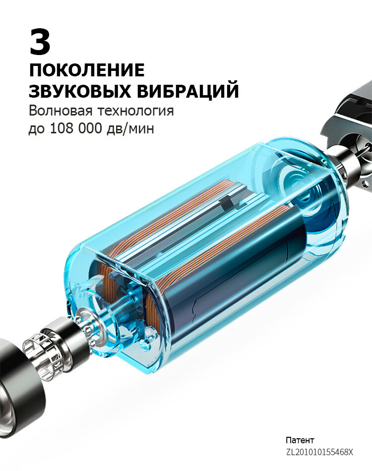 - Технология волновых вибраций на частоте до 108 000 дв/мин с большой амплитудой