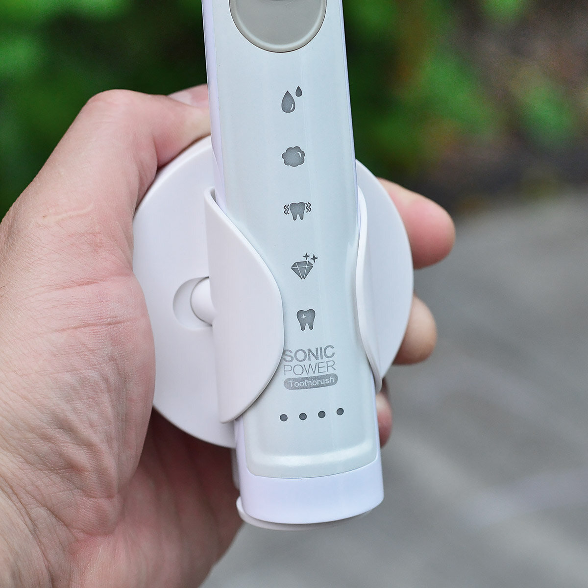 Тримач для електричної зубної щітки клеїться на стіну за допомогою міцного скотчу 3М (у комплекті). Підходить для будь-яких зубних щіток діаметром рукоятки від 18 до 32 мм. При установці зубної щітки в утримувач вона затискається спеціальним пружинним механізмом і буде надійно зафіксована до наступного використання.