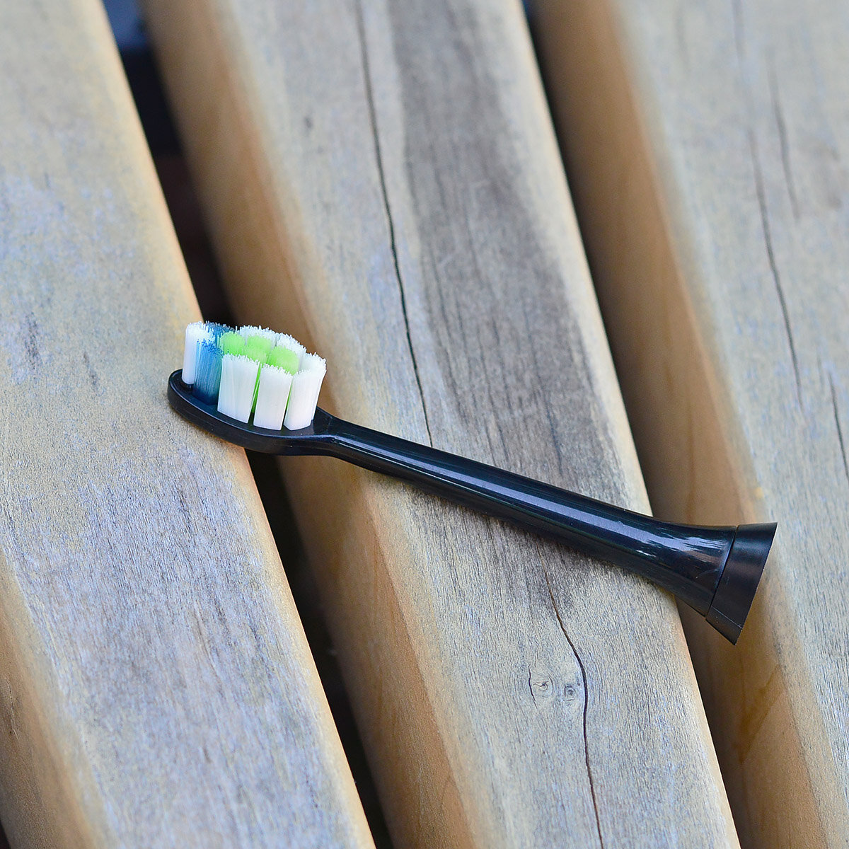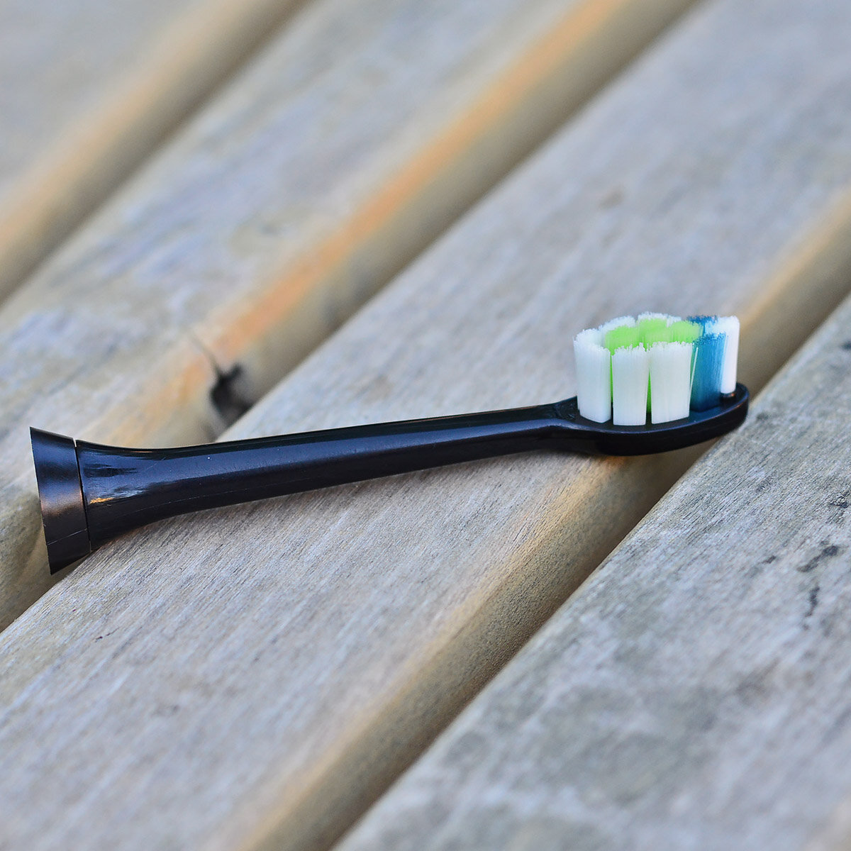 Форма для чищення головки - овальна. AFT технологія дозволила формувати довгі пучки щетини, це позитивно позначилося на чистячих властивості насадки. Центральна частина головки має більш щільну опуклу щетину - що ефективно для полірування зубної емалі, дана зона не контактує з яснами, тому чистка зубів буде помірно делікатною. Передній пучок волосинок (для вичищення між зубами) має посилення, що збільшує його жорсткість і дозволяє зберегти свою форму з часом.