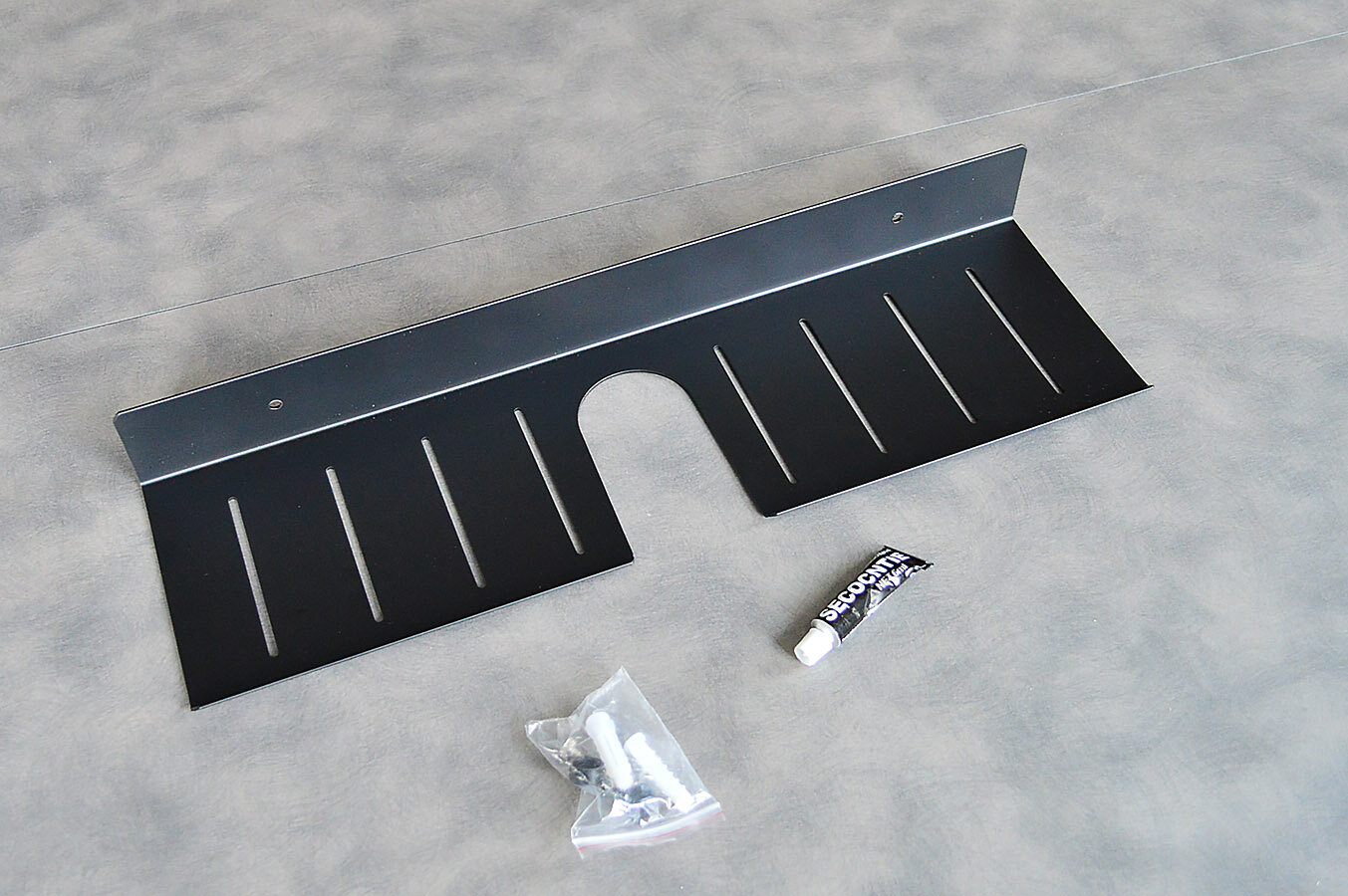 Полиця для ванної з алюмінію. Полиця виготовлена ​​в стилі Лофт, що гармонійно поєднується з більшістю дизайнерських рішень при облаштуванні ванної кімнати. Покриття - надміцний ґрунт + чорна фарба.