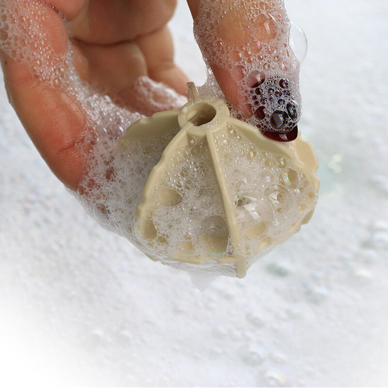 Кулька Laundry-Ball Turbo складається з напрямних площин та отворів, через які при пранні циркулює вода. Потоки води значно покращують промивання речей при пранні.